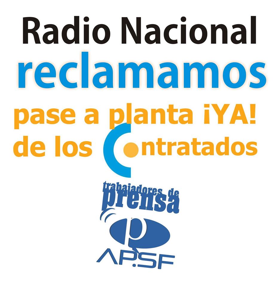 Ante esta sucesión de incumplimientos e irregularidades la APSF, la CTA Santa Fe, junto a los trabajadores, dice basta. Basta de precarización laboral en Radio y Televisión Argentina. Basta de propuestas y promesas que, como nos ha demostrado la experiencia en estos años de permanente reclamo, luego son sistemáticamente incumplidas. Exigimos el pase a planta de todos los trabajadores contratados de Radio Nacional y convocamos a todos las organizaciones sindicales, sociales y políticas a apoyar este reclamo.